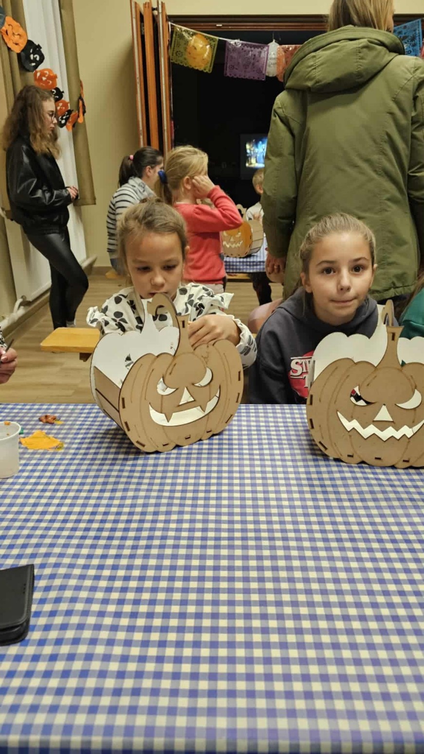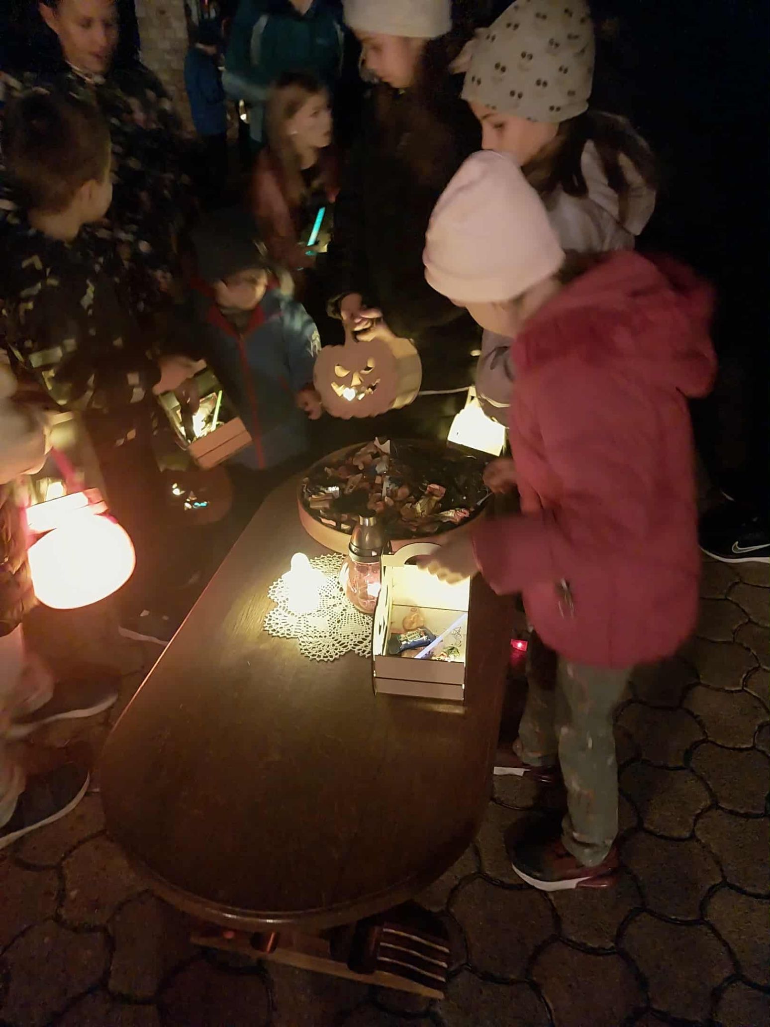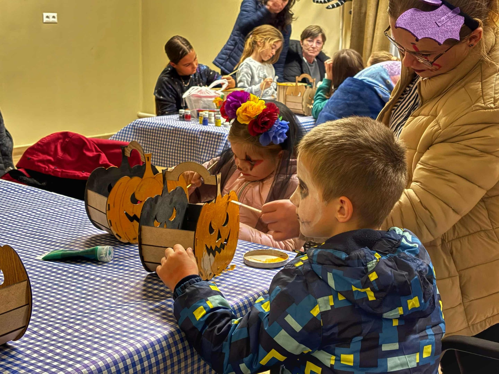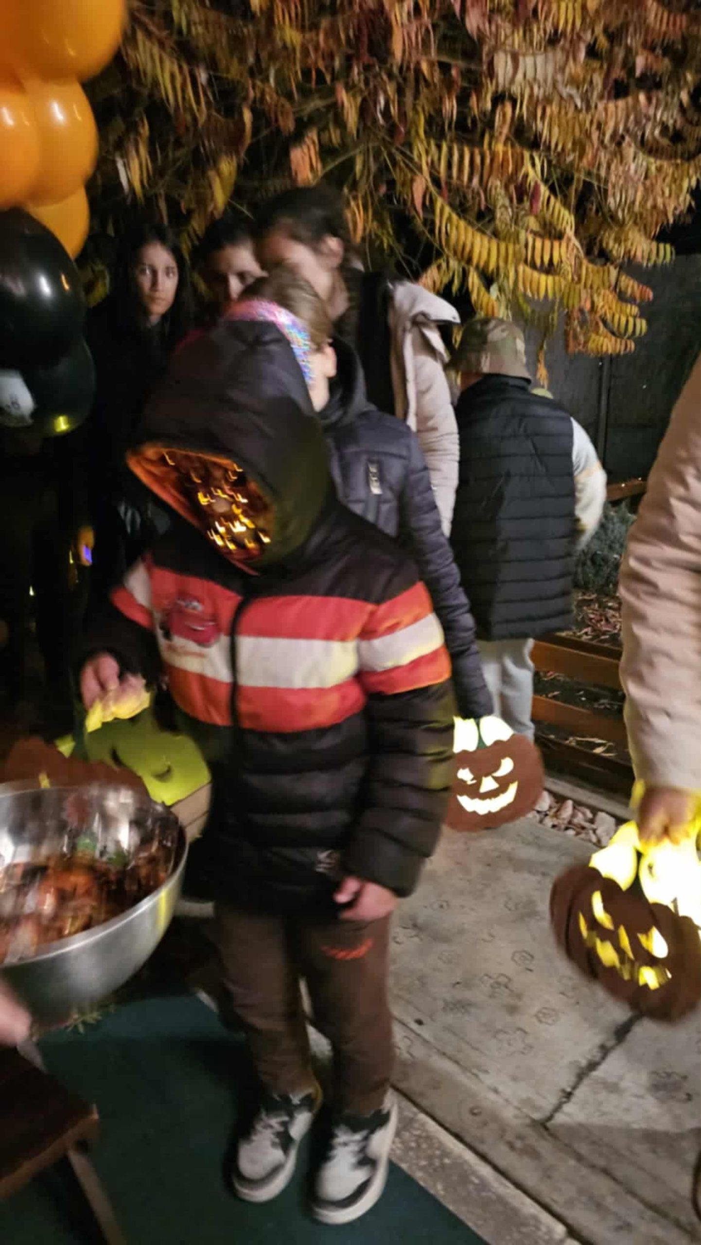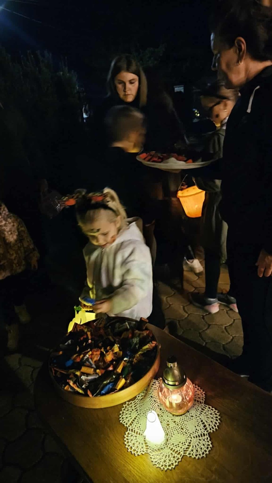 A gyerekek mosolygós arccal, nagy lelkesedéssel festették a tököket, kézműveskedtek, majd elindultunk közösen kopogtatni a faluban – „csokit vagy csalunk!” hangulatban.