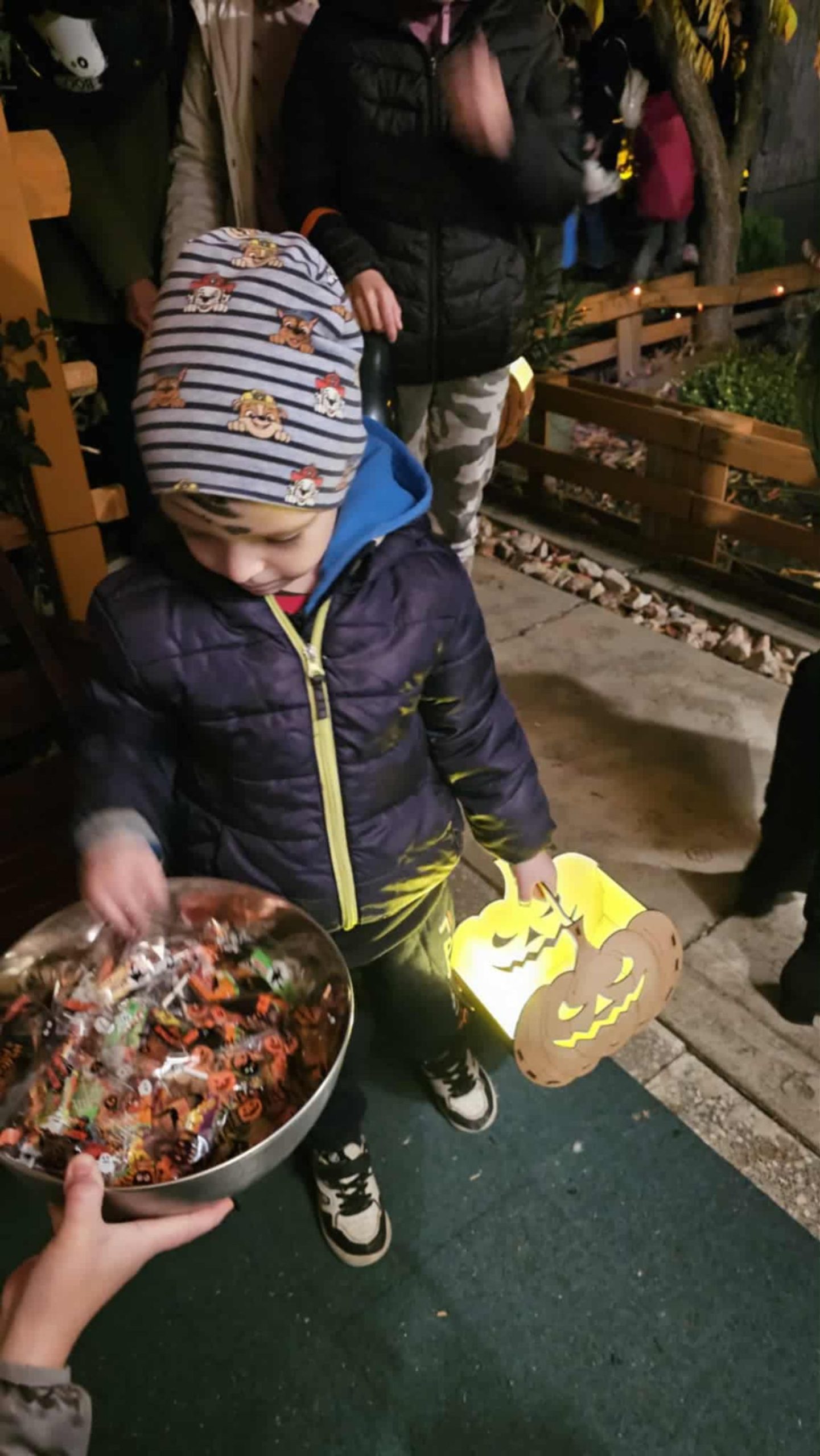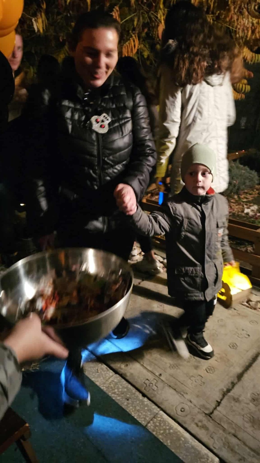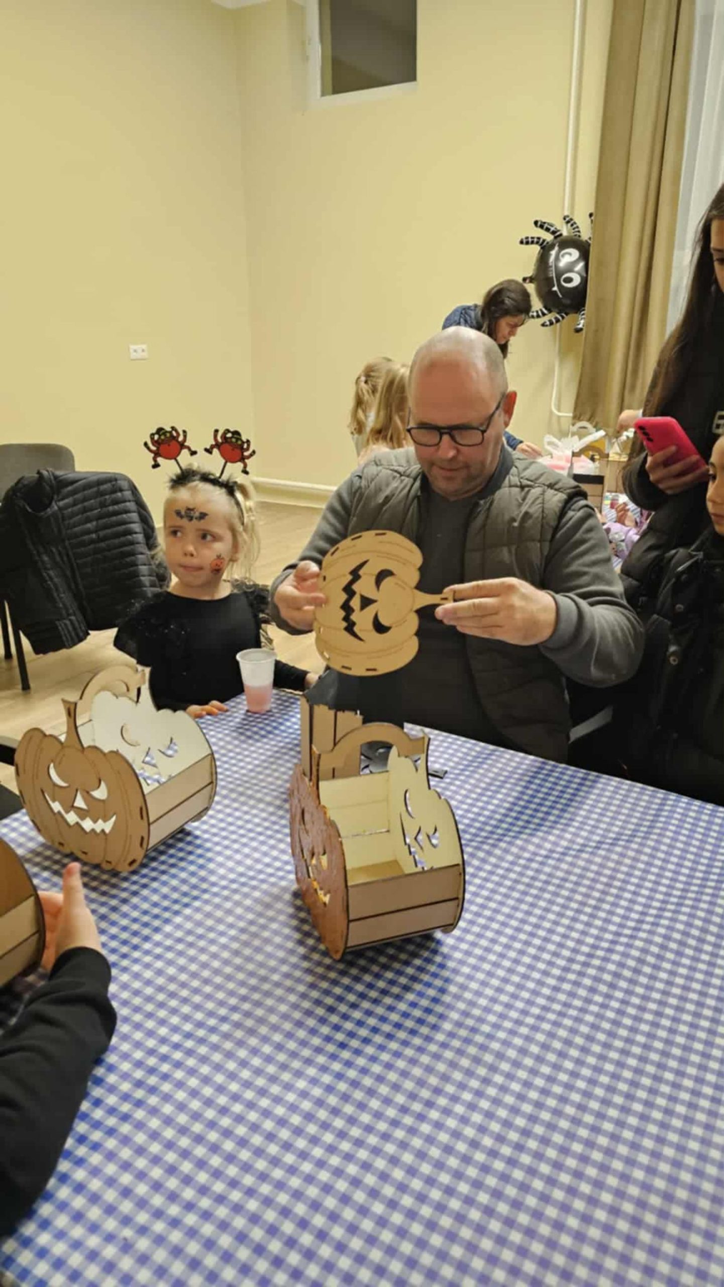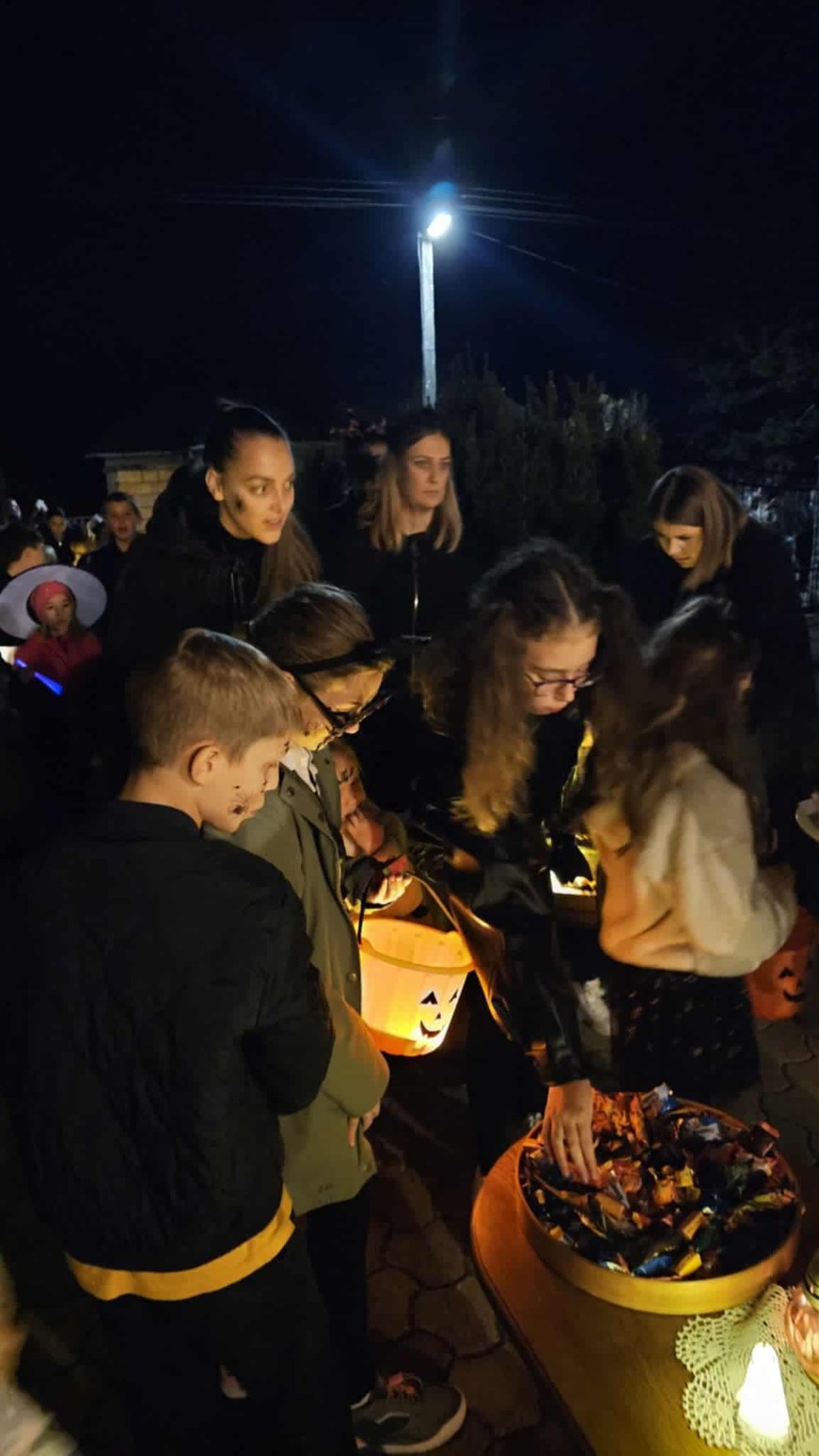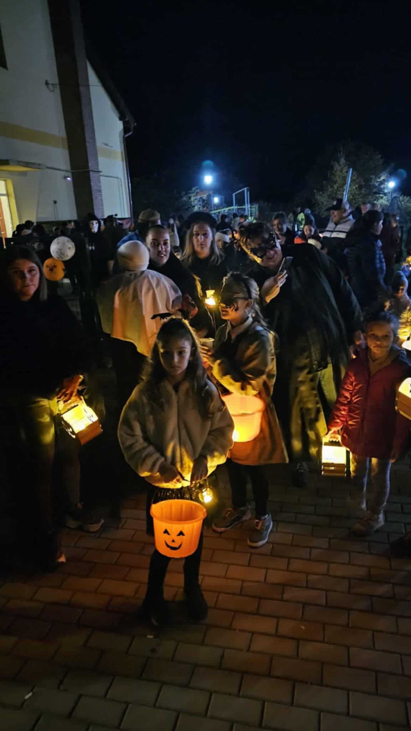 A gyerekek mosolygós arccal, nagy lelkesedéssel festették a tököket, kézműveskedtek, majd elindultunk közösen kopogtatni a faluban – „csokit vagy csalunk!” hangulatban.
