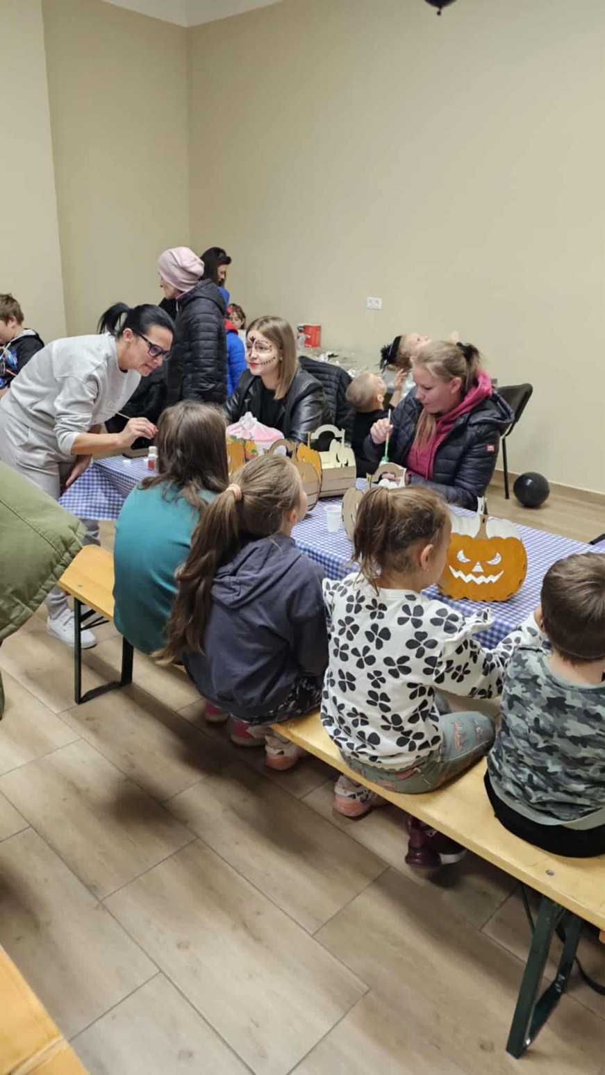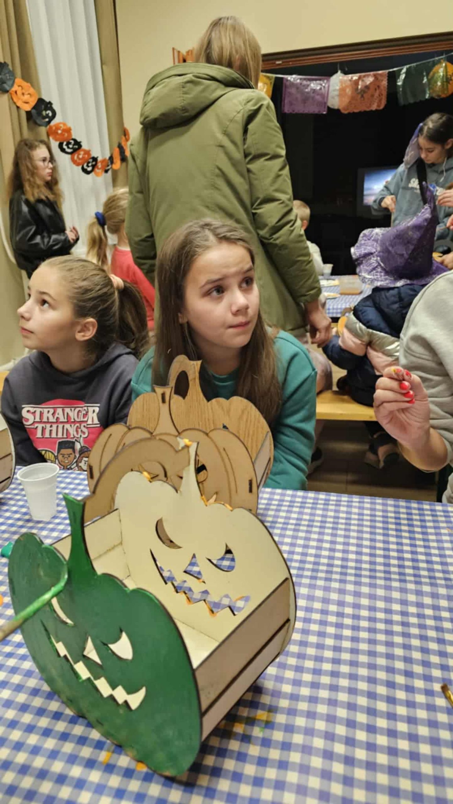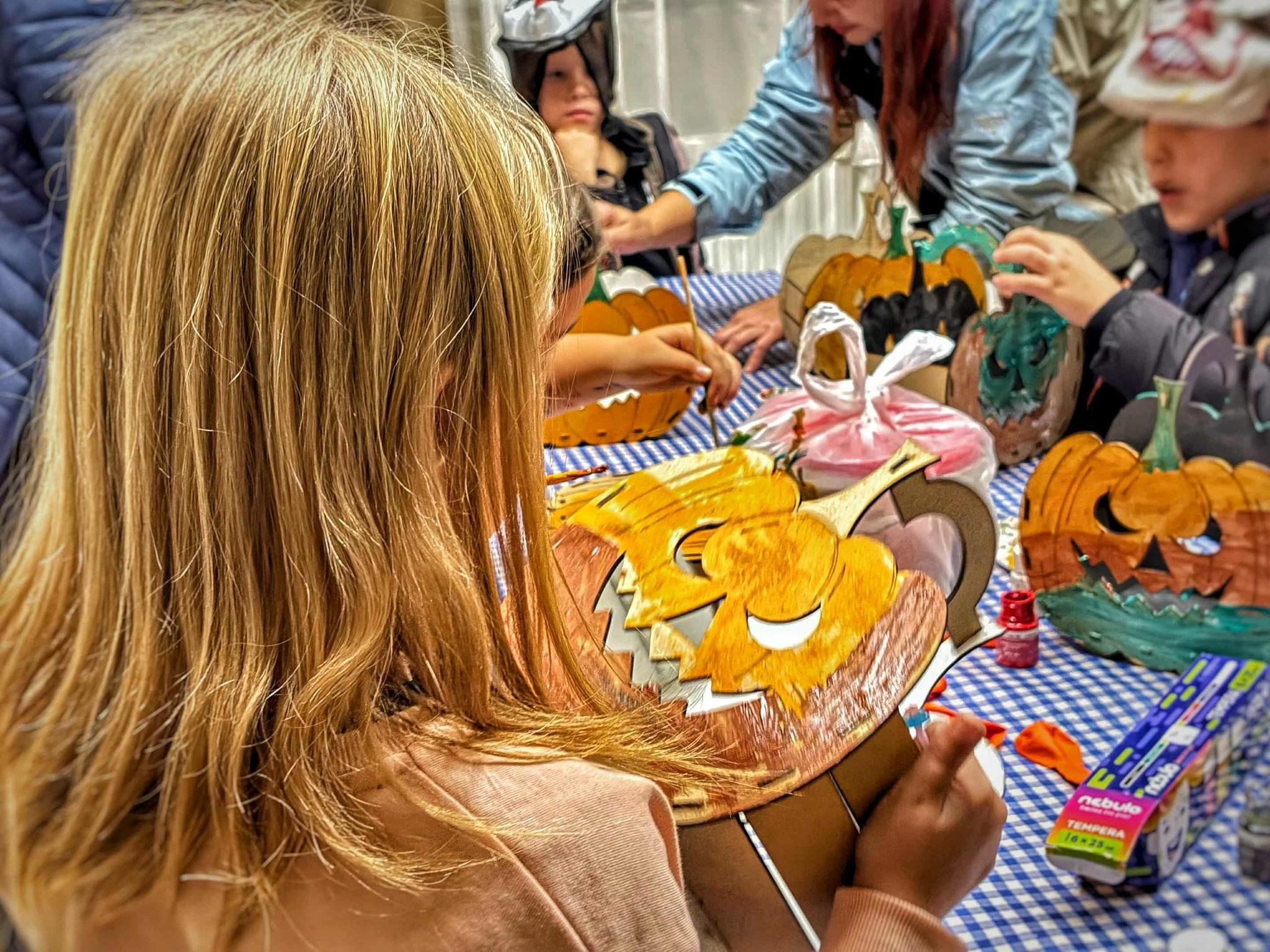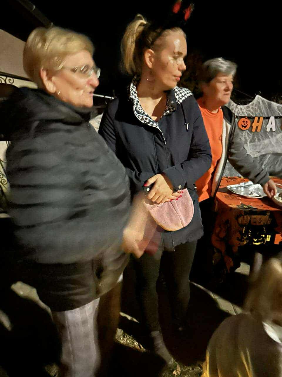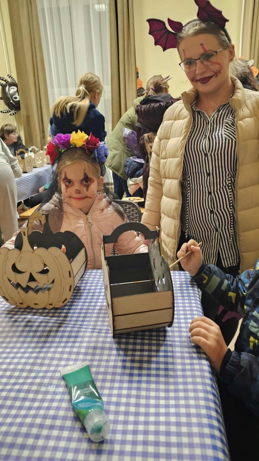 A gyerekek mosolygós arccal, nagy lelkesedéssel festették a tököket, kézműveskedtek, majd elindultunk közösen kopogtatni a faluban – „csokit vagy csalunk!” hangulatban.