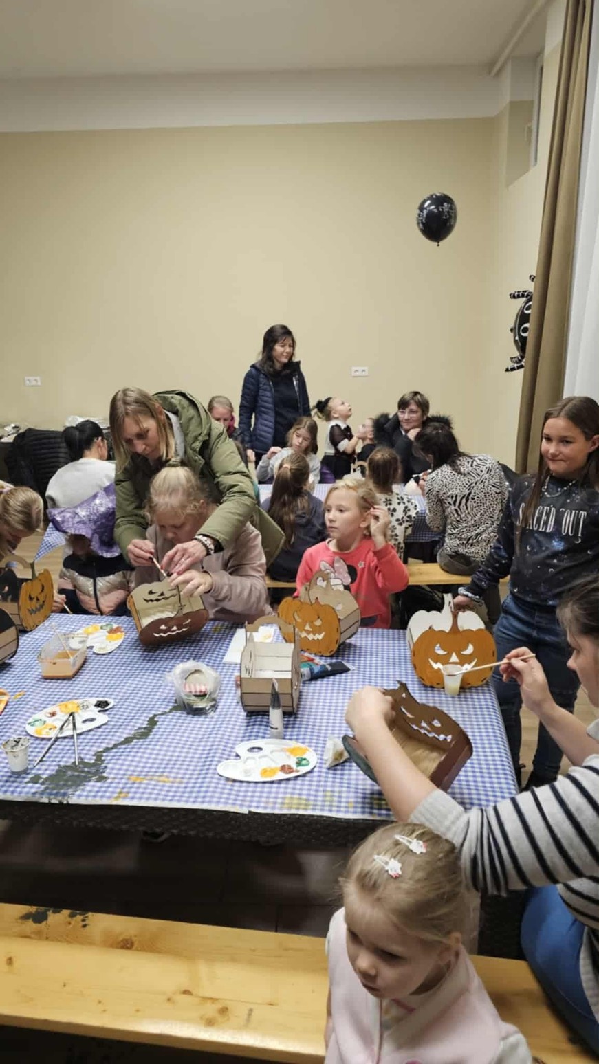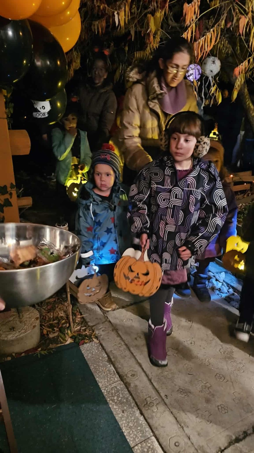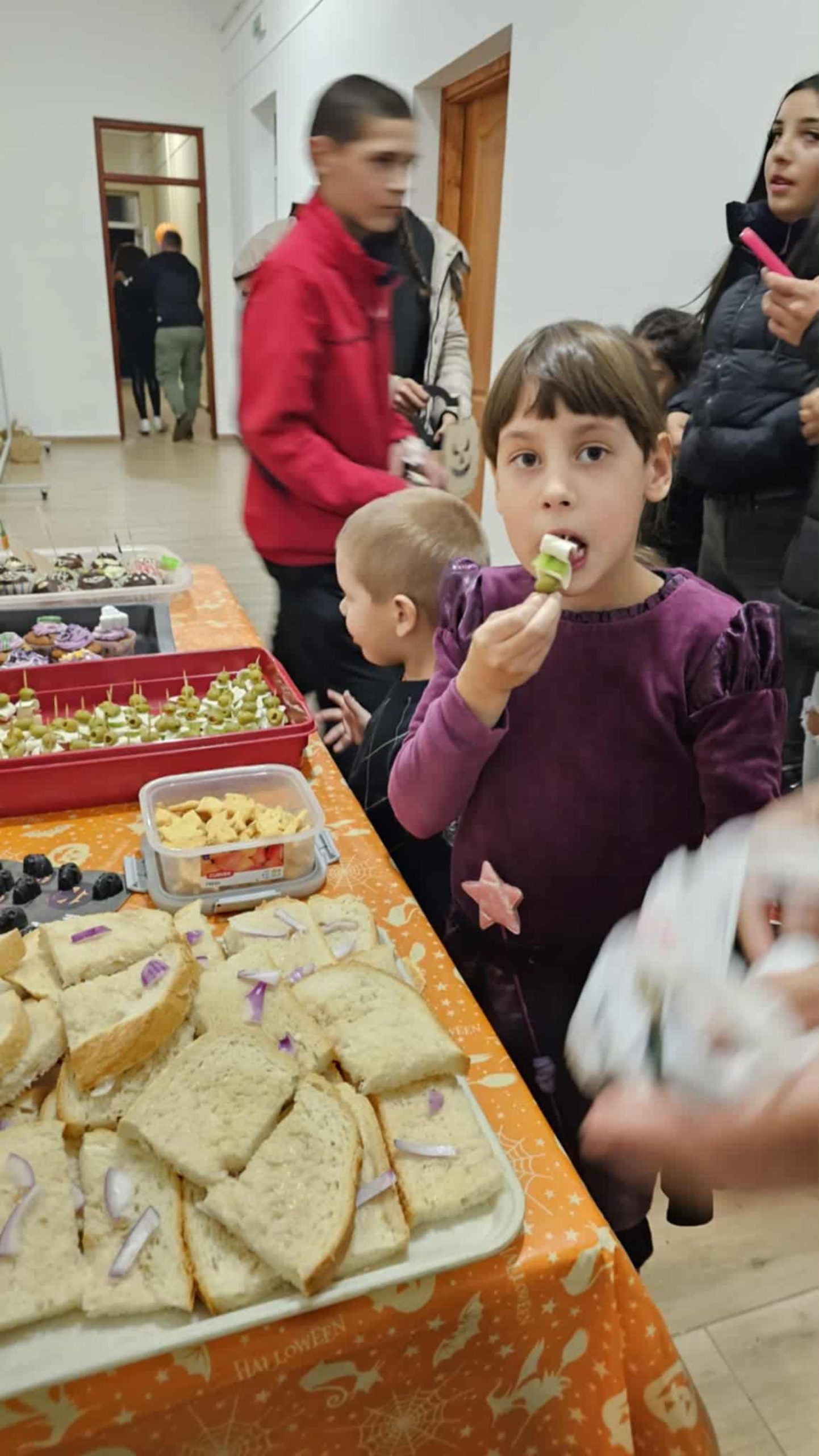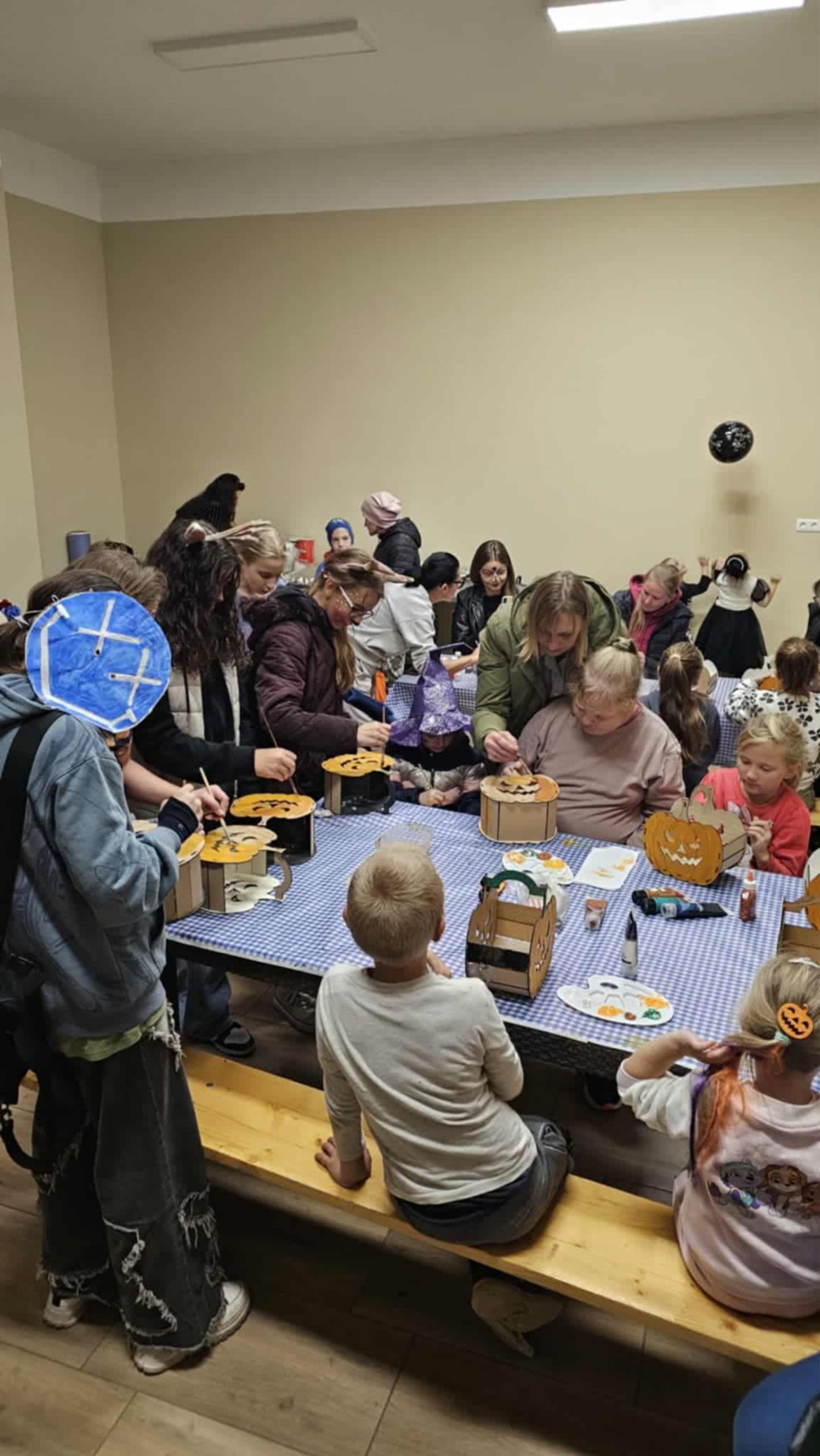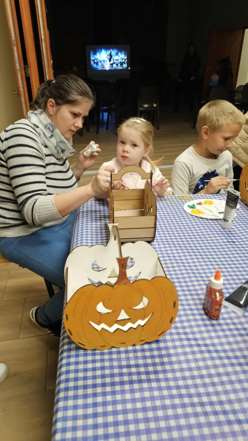 A gyerekek mosolygós arccal, nagy lelkesedéssel festették a tököket, kézműveskedtek, majd elindultunk közösen kopogtatni a faluban – „csokit vagy csalunk!” hangulatban.