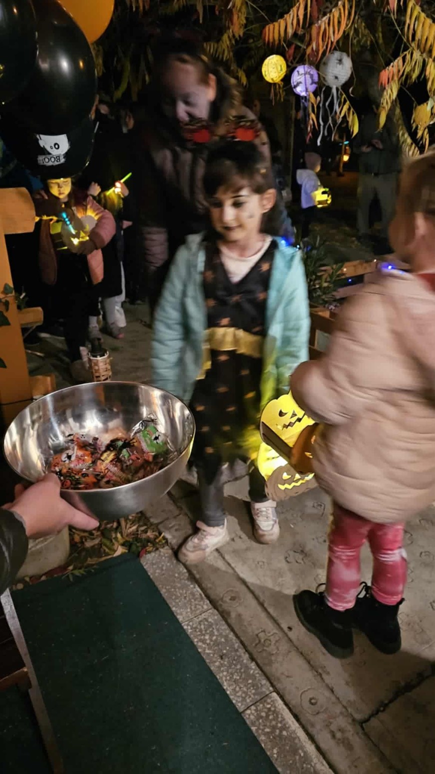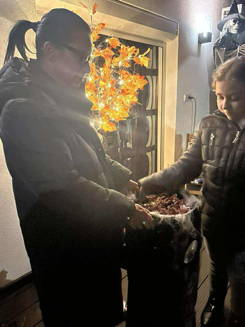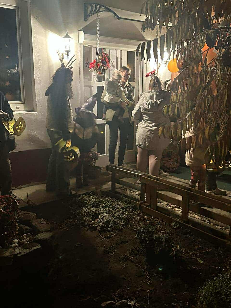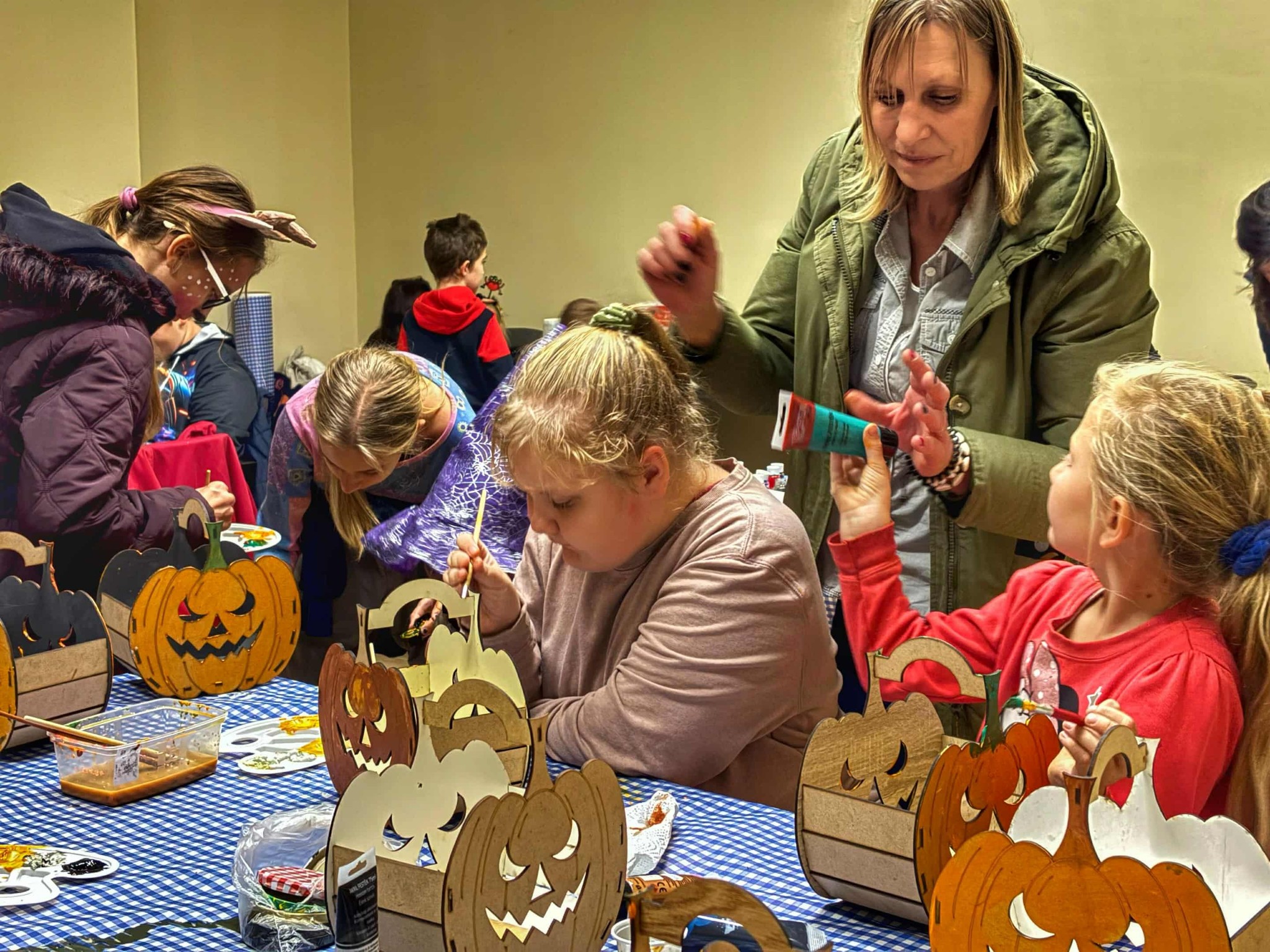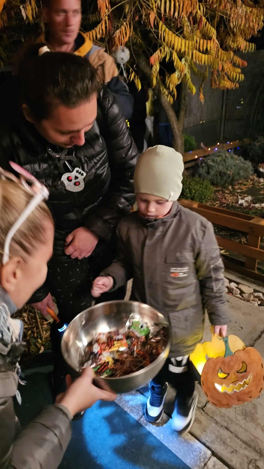 A gyerekek mosolygós arccal, nagy lelkesedéssel festették a tököket, kézműveskedtek, majd elindultunk közösen kopogtatni a faluban – „csokit vagy csalunk!” hangulatban.
