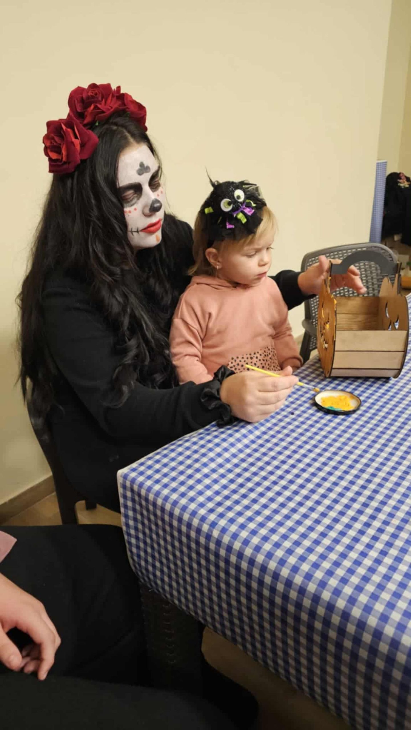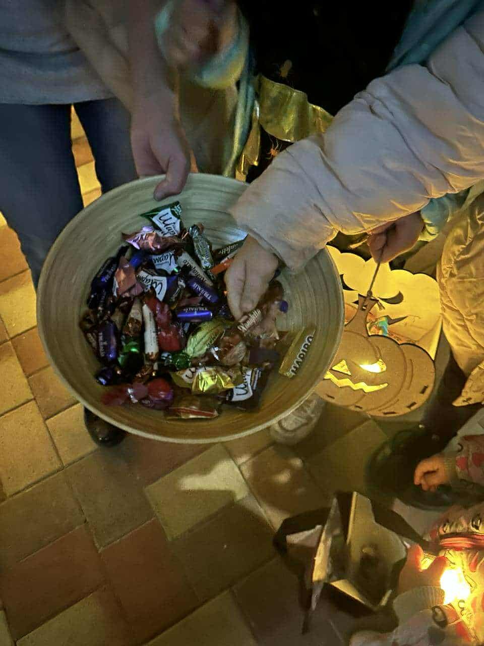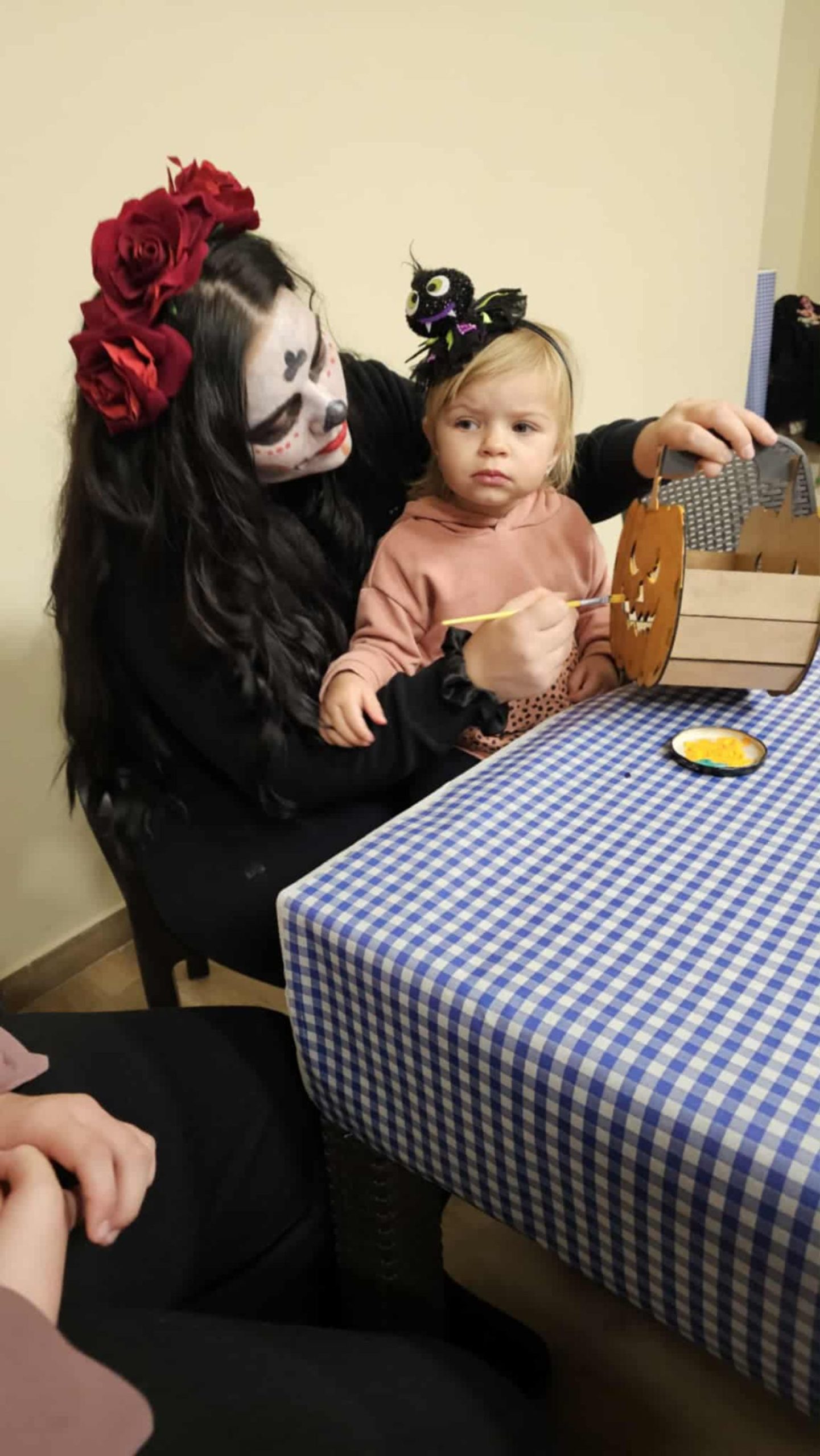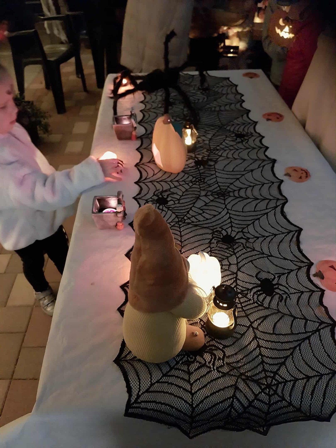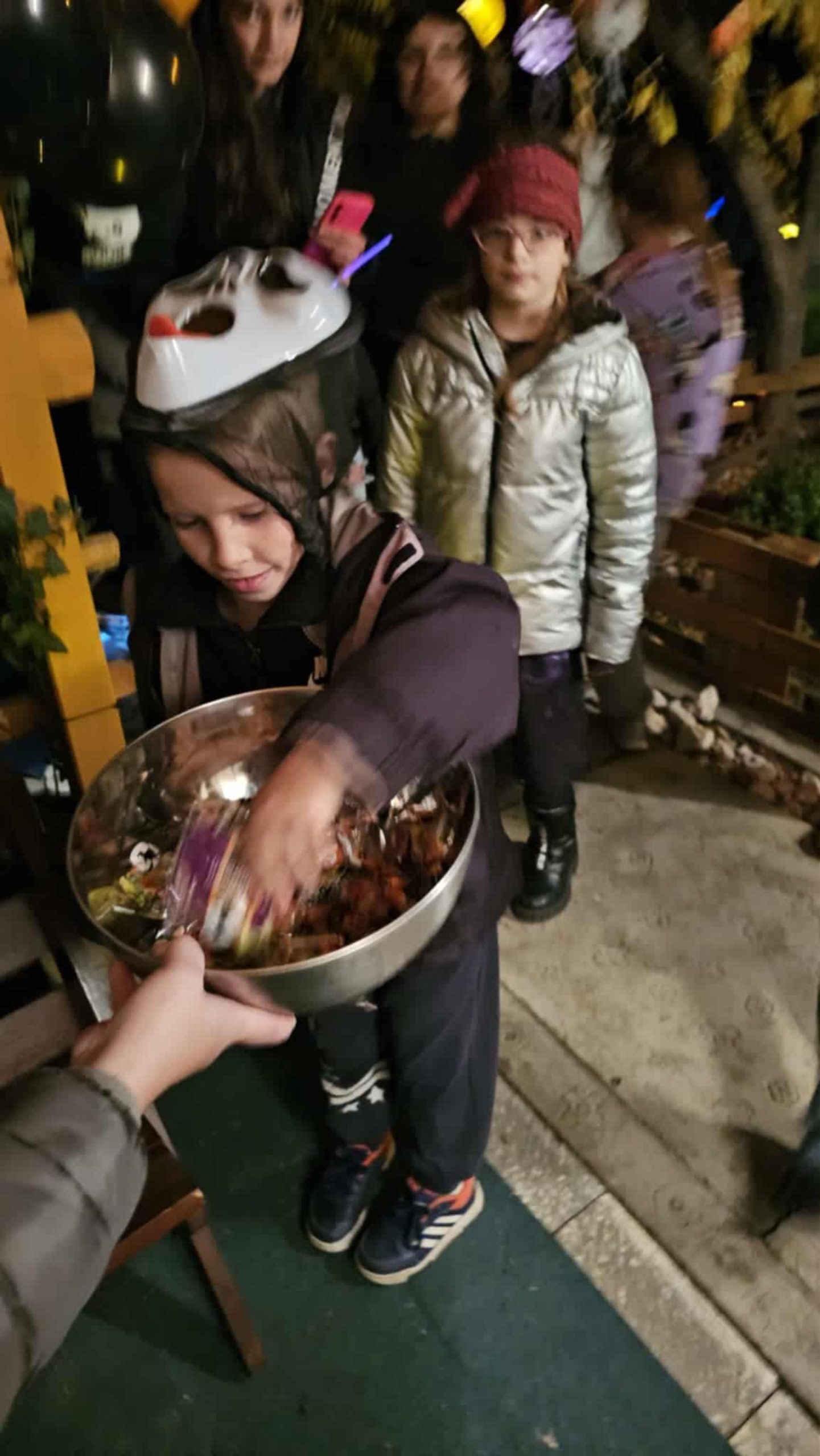 A gyerekek mosolygós arccal, nagy lelkesedéssel festették a tököket, kézműveskedtek, majd elindultunk közösen kopogtatni a faluban – „csokit vagy csalunk!” hangulatban.